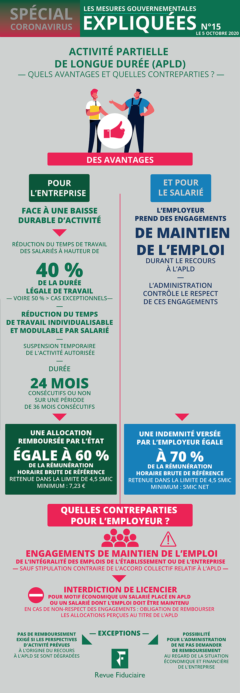 Concernant l’activité partielle de longue durée, les modifications portent sur le taux d’allocation remboursée à l’employeur et la sanction encourue en cas de non-respect des engagements en matière d’emploi. Sur l'activité partielle de droit commun, c'est le délai d'acceptation tacite de 15 jours qui est rétabli. De nouveaux changements sont à prévoir, à la suite des dernières annonces gouvernementales.
